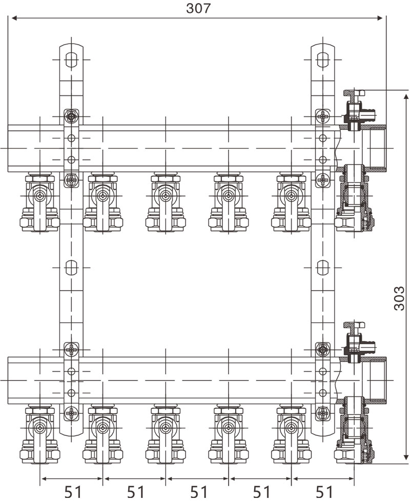 1、分水管上带各流量控制阀;